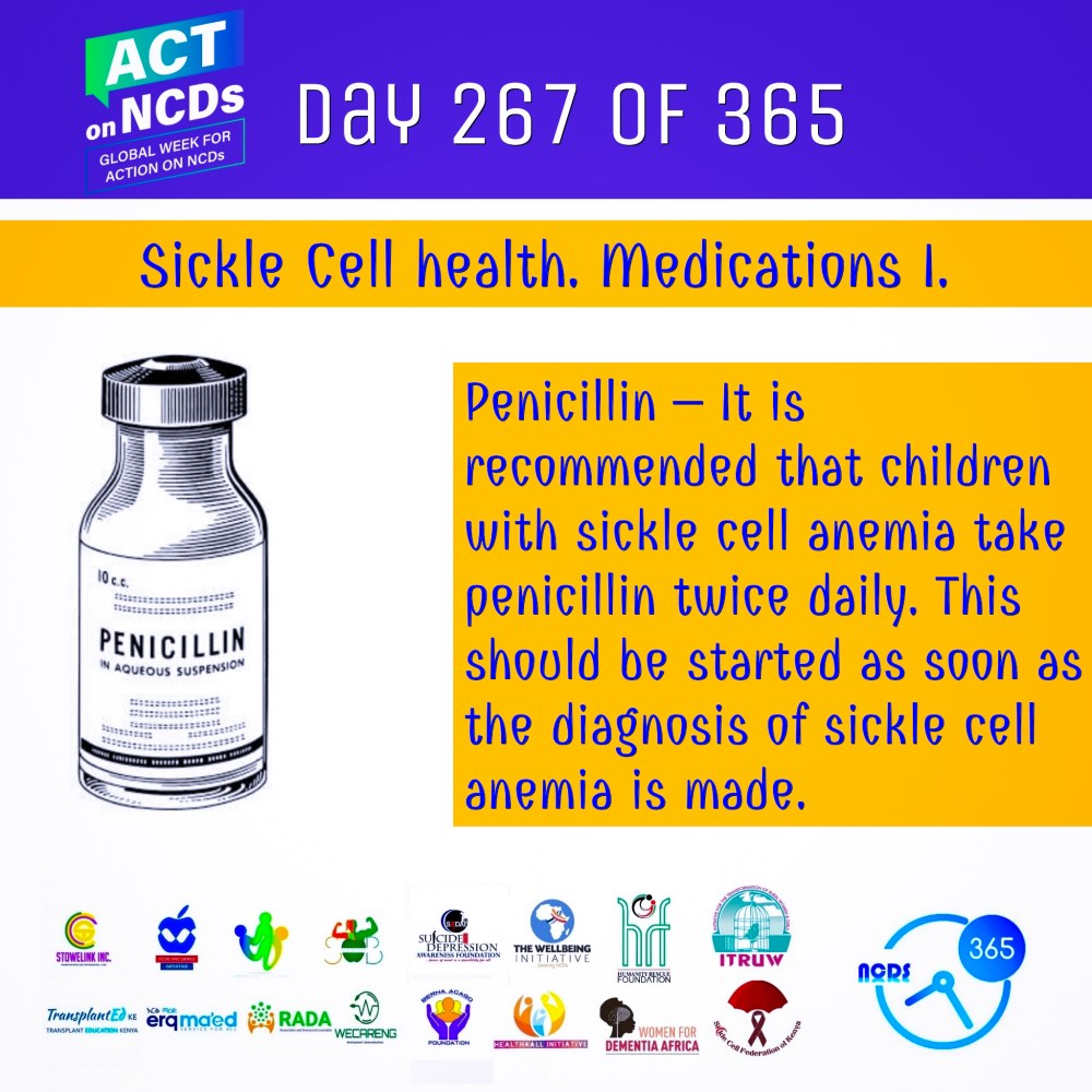 • Penicillin – It is recommended that children with sickle cell anemia take penicillin twice daily. This should be started as soon as the diagnosis of sickle cell anemia is made. This protects them against infections like Pneumococcal infections. A prescription can be obtained upon visiting doctor or clinic.