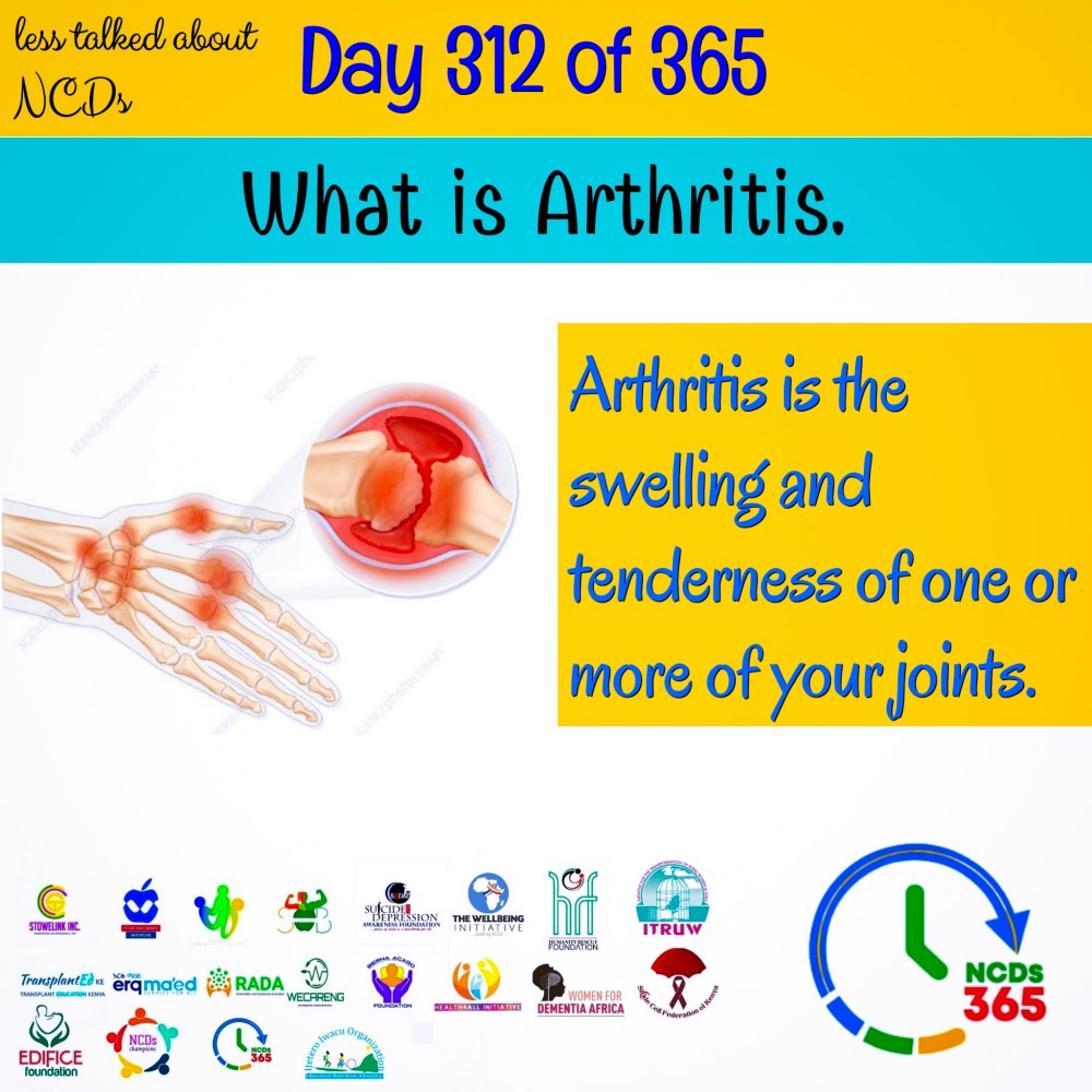 Arthritis is the swelling and tenderness of one or more of your joints. The main symptoms of arthritis are joint pain and stiffness, which typically worsen with age. The most common types of arthritis are osteoarthritis and rheumatoid arthritis.