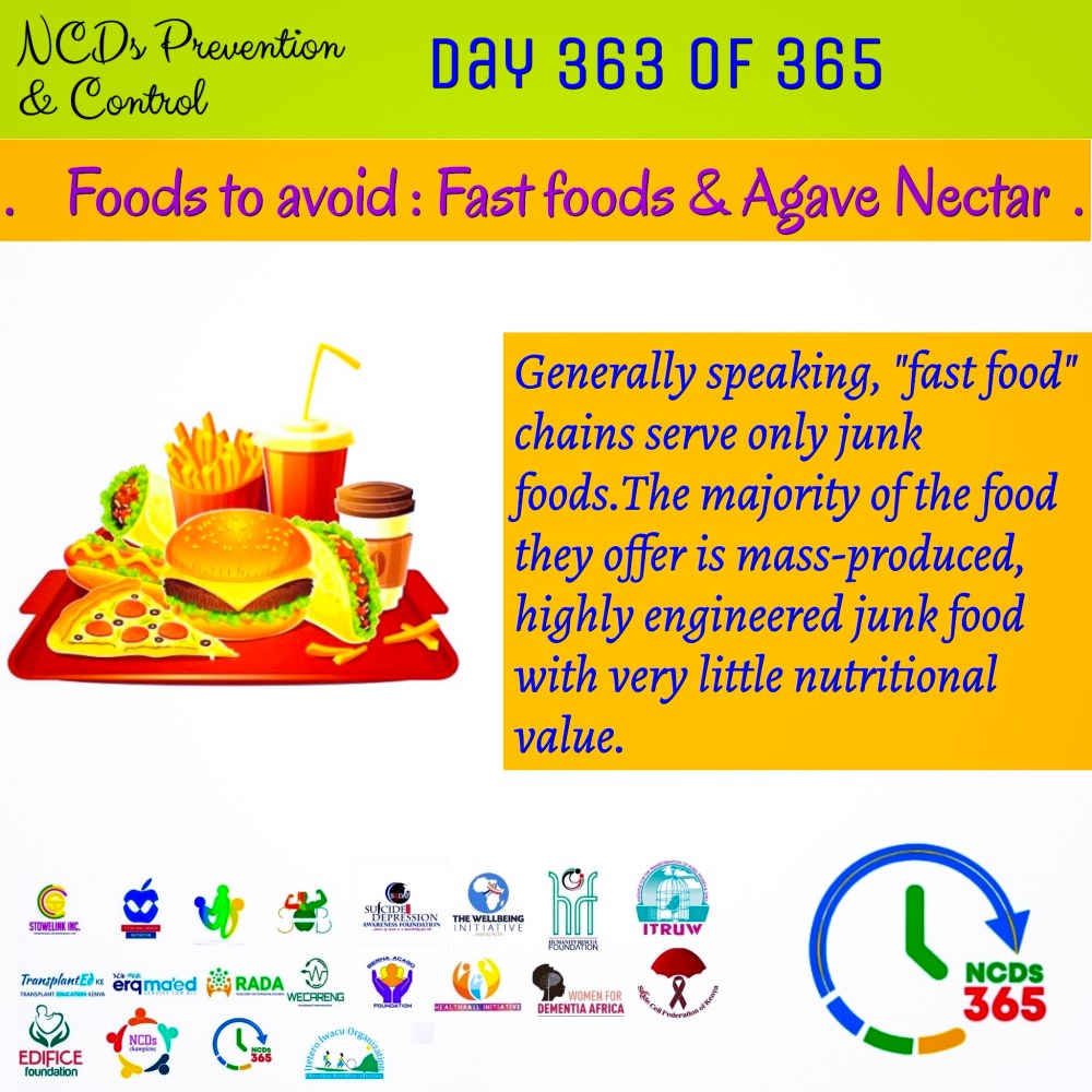 Generally speaking, “fast food” chains serve only junk foods.The majority of the food they offer is mass-produced, highly engineered junk food with very little nutritional value.These places are often very cheap, but keep in mind that junk food costs you twice.
