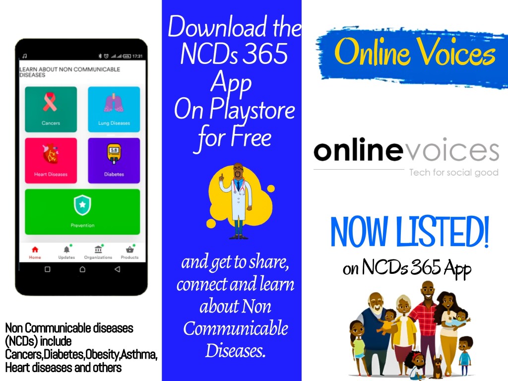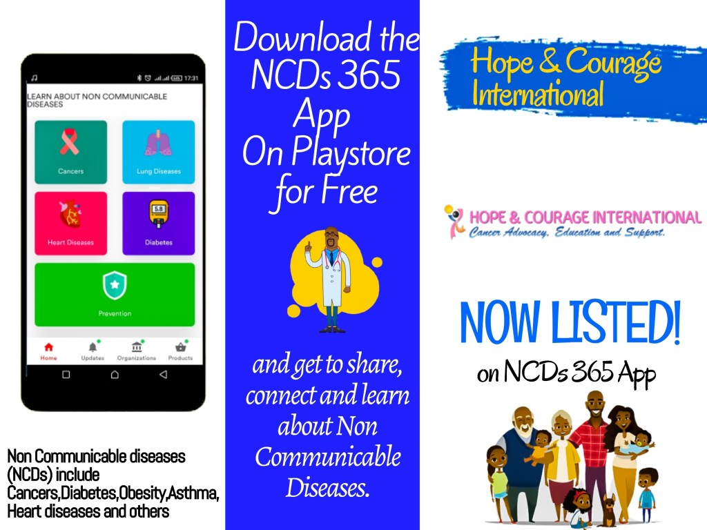 we have now listed 21 organizations working in the NCDs space on the NCDs 365 app. With this listing, these organizations will have an improved visibility especially to communities outside of the capital Nairobi and extend their reach and perhaps their services to rural communities who desperately need to know about, and access services from these patient support groups, patient led networks and NCDs advocacy groups.