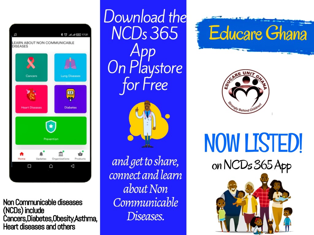 NCDs 365 app is a mobile platform that aims at educating communities on non-communicable diseases whilst connecting them to relevant events, updates and most importantly service providers and patient support groups working in the NCDs space. With the platform we are currently working with community health workers who use the app as part of their essential toolkits for NCDs education and referrals.