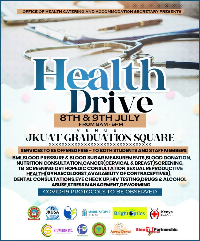 Stowelink was one of the partners for JKUAT Health drive which saw incredible number of students receive a wide array of medical checkup. Some of the medical services offered to students and the JKUAT community at large were: