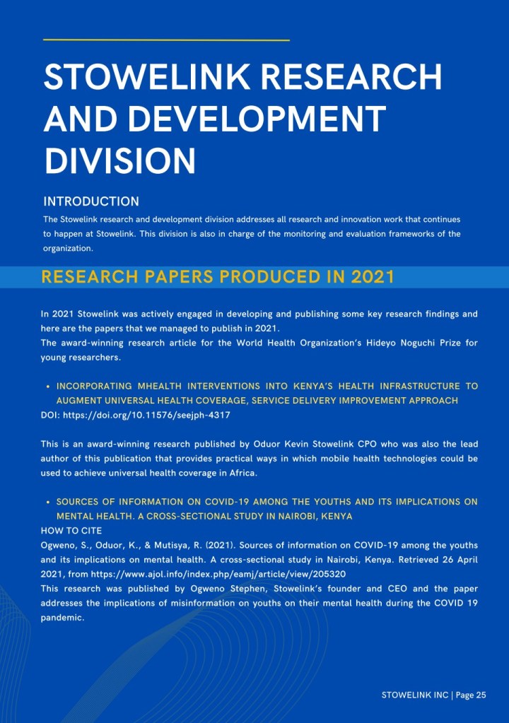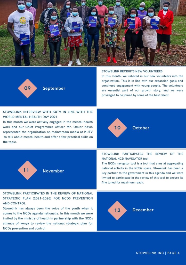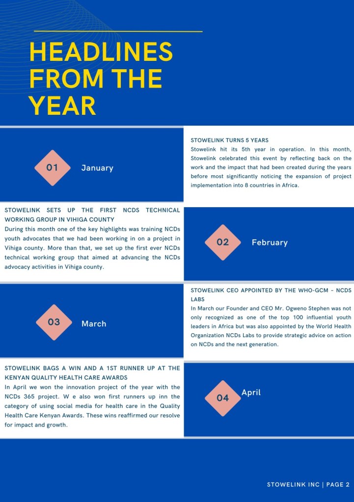 The Stowelink 2021 annual report is officially out. The report goes into an in-depth analysis of what happened in 2021 documenting all our impact and success. The annual report is also visually compelling telling our stories through the photos and imagery that will ensure that as you read it you are immersed into the experience.