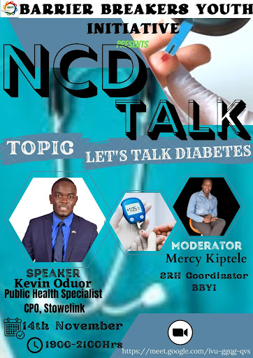 In the run-up to World Diabetes Day (WDD) 2022, Breaking Barriers Youth Initiative organized a Diabetes talk to sensitize members on this chronic non-communicable disease. Our Chief Program Officer, Mr. Oduor Kevin was invited to give a keynote presentation on the disease and explain more about World Diabetes Day commemorated annually on 14th November.